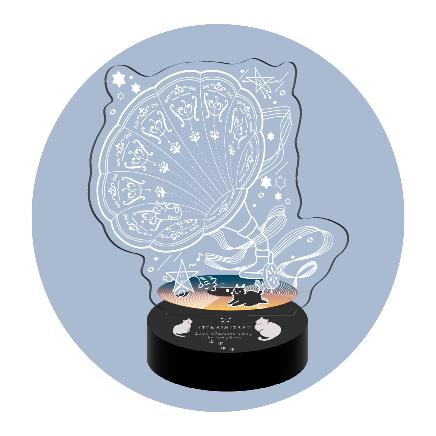 公演日にちなんで蓄音機デザインのライトアップアクリルスタンド。