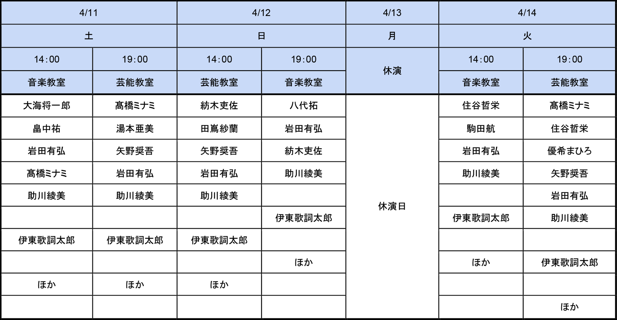 4月13日(月) 休演日