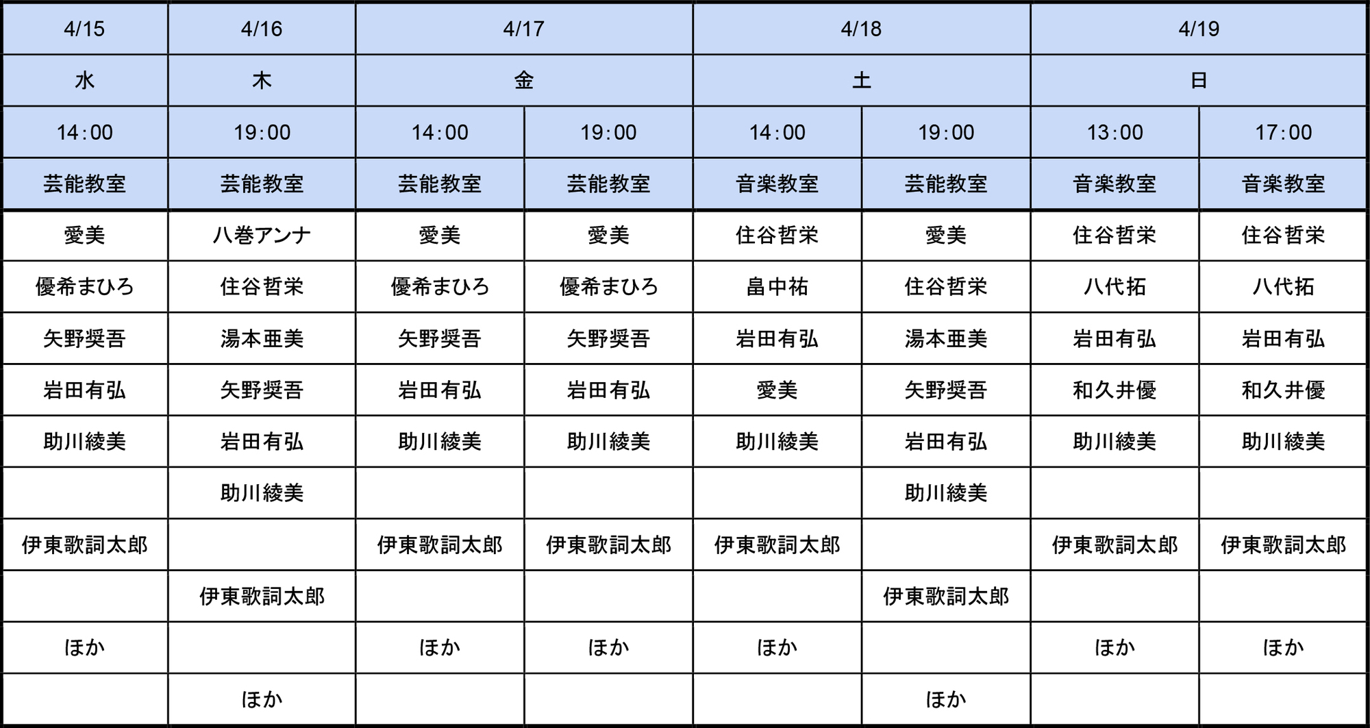 4月15日(水) 14:00(芸)